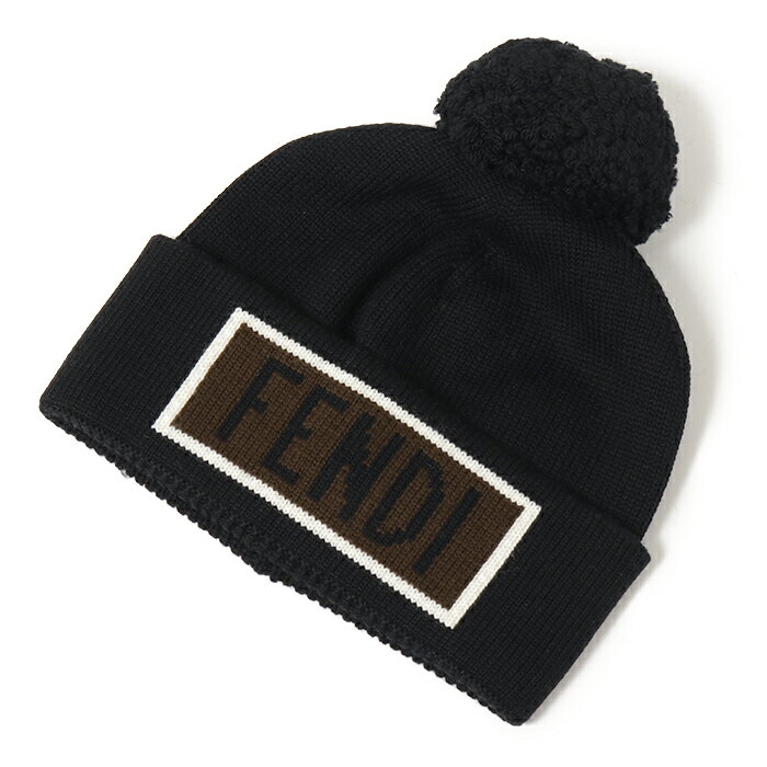 FENDI フェンディ FXQ056 A40F ボンボン付き ウールニットキャプ F0QA1
