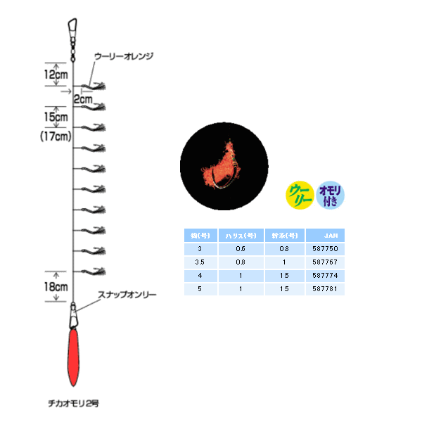 ハヤブサ チカ オレンジウーリー10本 HS507 10本鈎 5号 (ハリス 1号) 【10点セット】