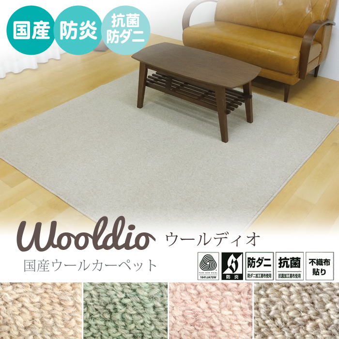 【防炎】国産ウールカーペット【ウールディオ】 【本間】2帖(191×191cm)サイズ【ホットカーペット対応 ウールマーク 防炎マーク 日本製 国産カーペット】正方形【2畳 2畳 2帖 二畳 二帖】※メーカー直送の為、代引き・他の商品との同梱は出来ません。
