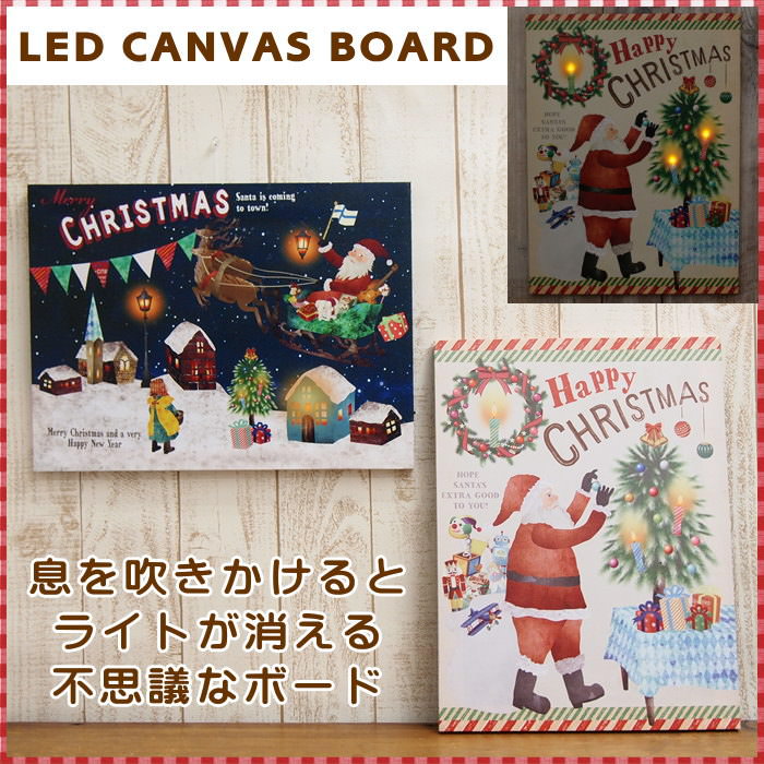 クリスマスオーナメント クリスマス雑貨 クリスマス用品 LED ライト 飾り デコレーション 装飾 インテリア 壁掛け 飾り付け 北欧 ナチュラル おしゃれ イルミネーション サンタ ポスター Xmas 店舗 カフェ【クリスマスLEDキャンバスボード】【ネコポス便不可】【あす楽対応】