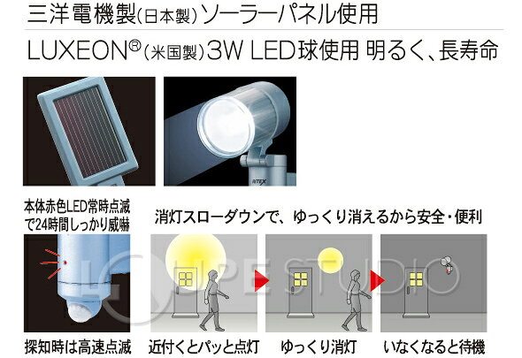 3W LEDソーラーライト ライテックスシリーズ S-70 MUSASHI [ムサシ] ソーラーライト スポットライト 人感センサー 明るい 防犯 照明