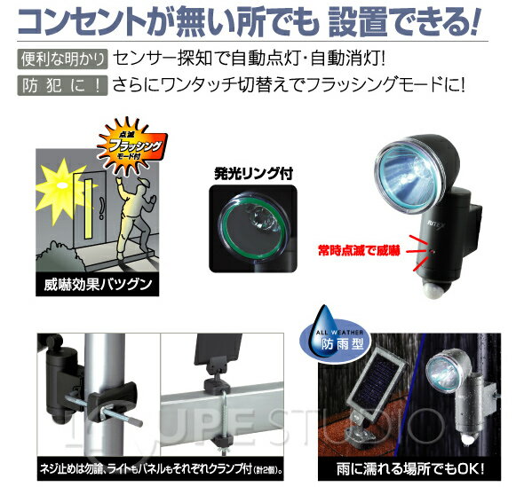 LEDソーラーライト 1W ライテックスシリーズ S-10L MUSASHI [ムサシ] ソーラーライト 明るい スポットライト 人感センサー 照明 防犯