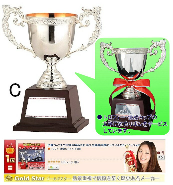 優勝カップ【レーザー文字無料】金属製優勝カップ GA220-Cサイズ●高さ180mm トロフィー トロフィー ゴルフ メダル 盾 優勝カップ ゴルフ トロフィー ボーリング 優勝トロフィー サッカー トロフィー ホールインワン トロフィー 優勝キャンペーン